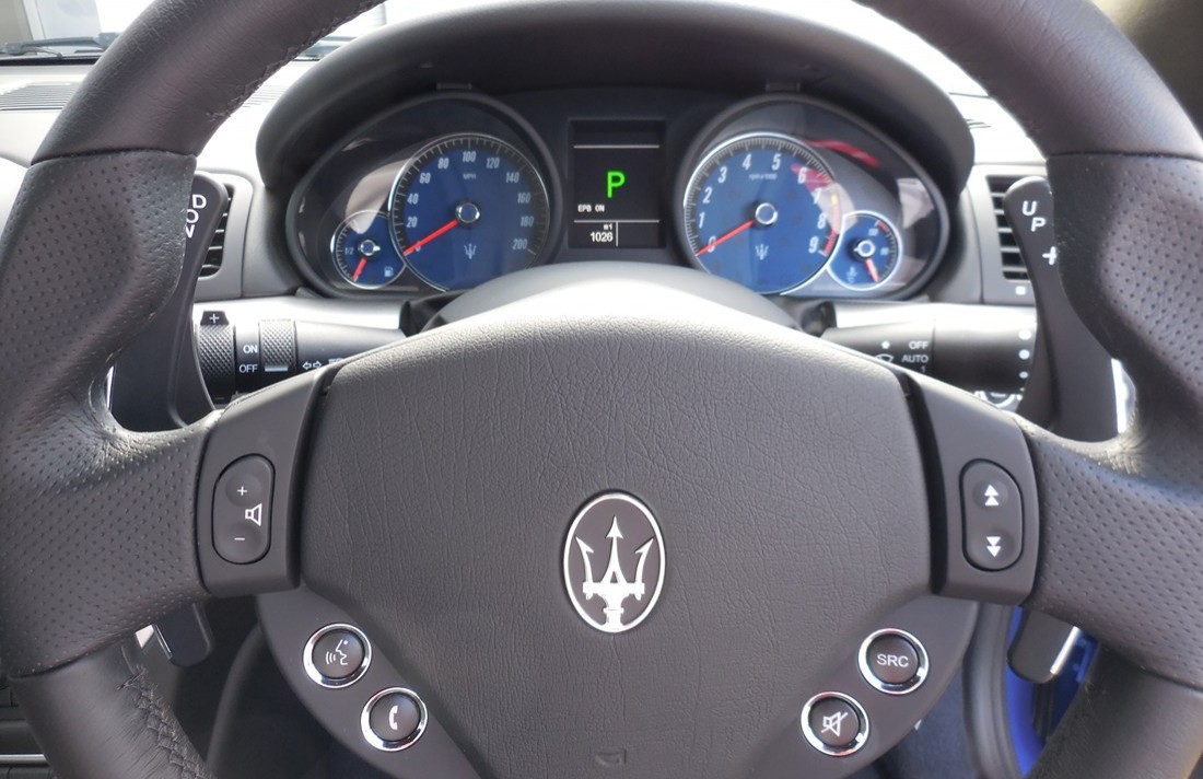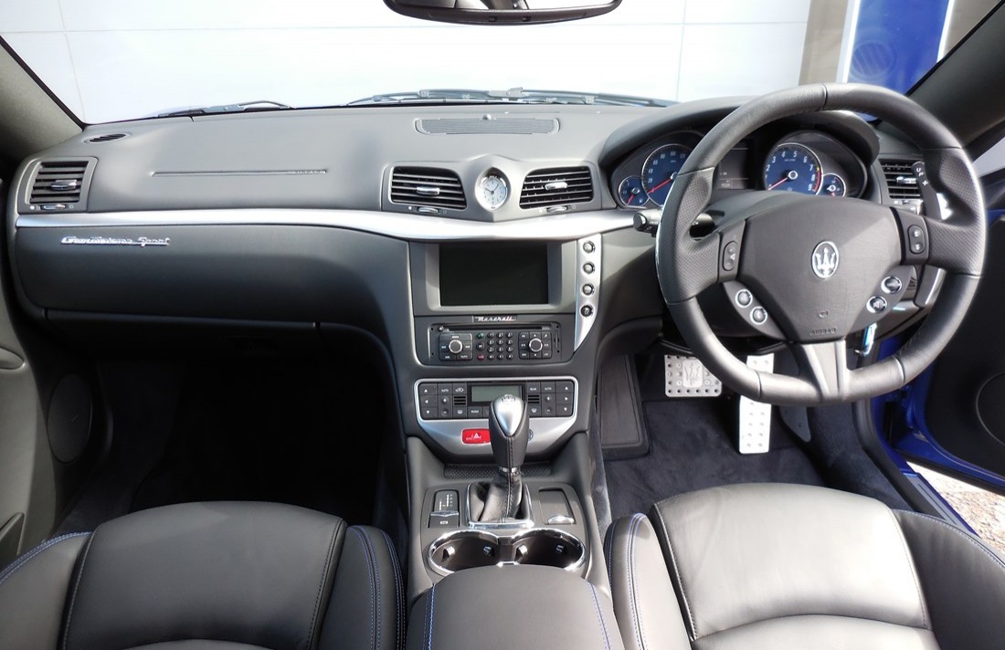BOSE SOUND SYSTEM, COMFORT PACK, 20INCH NEPTUNE ALLOYS, SAT NAV, BLUETOOTH, CRUISE CONTROL, AUTO LIGHT AND WIPERS., Upgrades – Bluetooth, Bose Surround Sound System, Trident Logo Stitched on Head Rest, Metallic Paint, Comfort Pack Front Seats, Black Side Skirts, iPod Connection, Alloy Wheels – 20in Grigio Mercury Neptune Design, Red Brake Callipers, Black leather with Contrast Blue Stitching interior, Sat Nav, Cruise Control, Auto Lights, Auto Wipers, Climate control, Full dealership history, Excellent bodywork, Interior – Excellent Condition, Tyre condition Excellent, Standard Features – Navigation, Dual Zone Automatic Climate Control, Front and Rear Parking Sensors with Graphical Display on Central Digital Cluster, Voice Control, 20-inch Astro Design Alloy Wheels (8.5J x 20in Front/10.5J x 20in Rear), Alarm System ( Perimeter and Volumetric Sensing ), Anti – Lift Device,, Electrically Adjustable Front Seats, NavTrack Vehicle Tracking System with Automatic Driver Recognition and Remote Inhibition, RDS Tuner, Single CD Player, 30Gb Hard Disk Drive USB and Aux – in, Rain Sensors, Upholstery – Poltrona Frau Leather. 4 seats, Metallic Blu Sofisticato, MASERATI MAIN DEALER